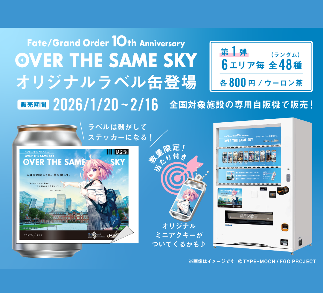 #FGO「OVER THE SAME SKY」オリジナルラベル缶第1弾が1/20(火)より絶賛発売中💖